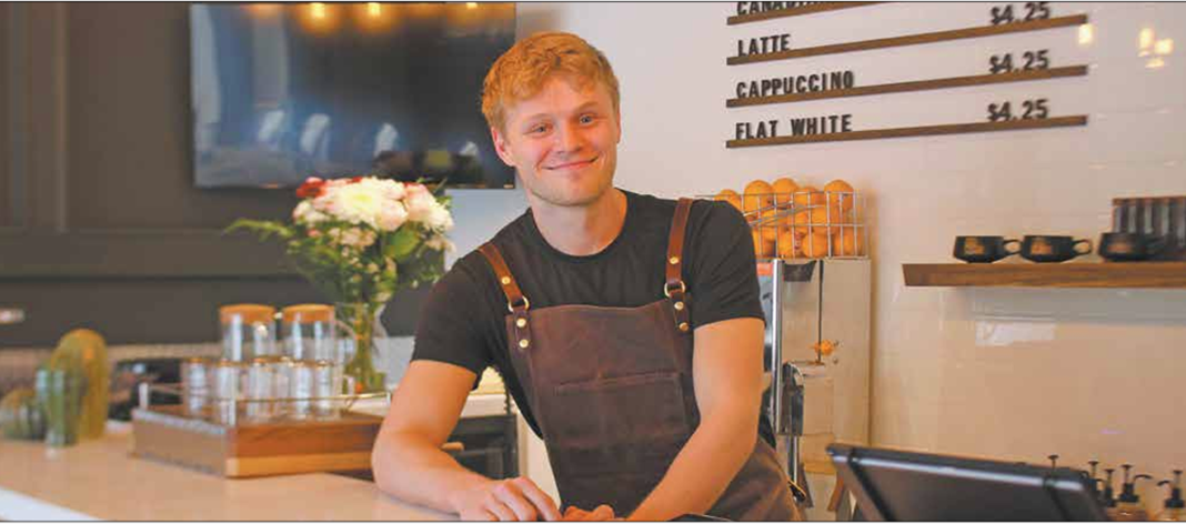 “I found that my happy place was being in a coffee shop. I’ve always wanted to own a coffee shop. I have no idea what I’m doing, but I’m learning,” he says with a wry smile.