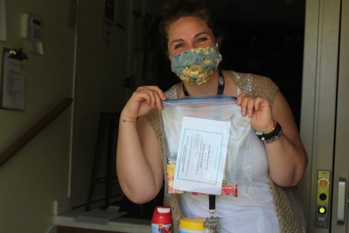 The large room was set with comfortable chairs, sofas, potted plants and a large-screen TV. Craft projects decorated a windowsill and photos of smiling seniors at a birthday party were pinned to a corkboard.